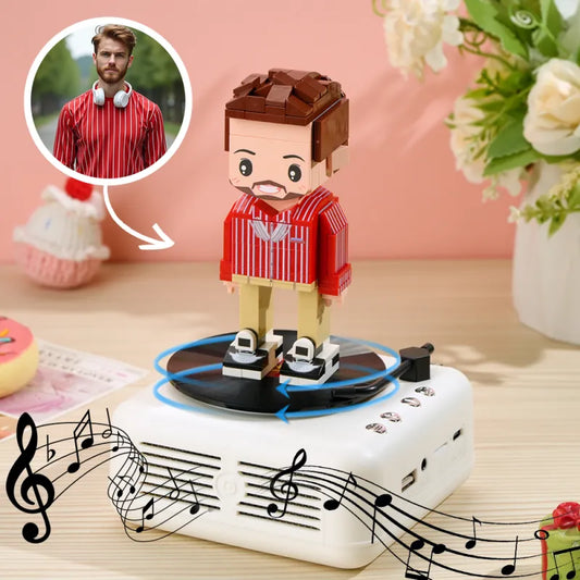 Customizable 1 Person Full Body Custom Brick Figures with Bluetooth Speaker Base Can Play Music Anniversary Gift