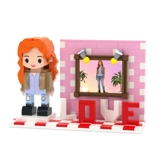 Custom Full-Body Brick Figures for 2 People with Photo Frame – Cute Personalized Gift