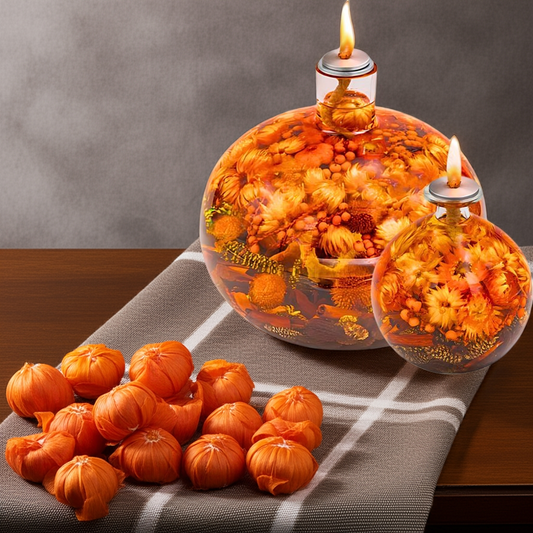 Refillable Glass Oil Lamp - Cozy Home Decor with Dried Flowers - Scentless & Handmade - 50+ Hours Burn Time