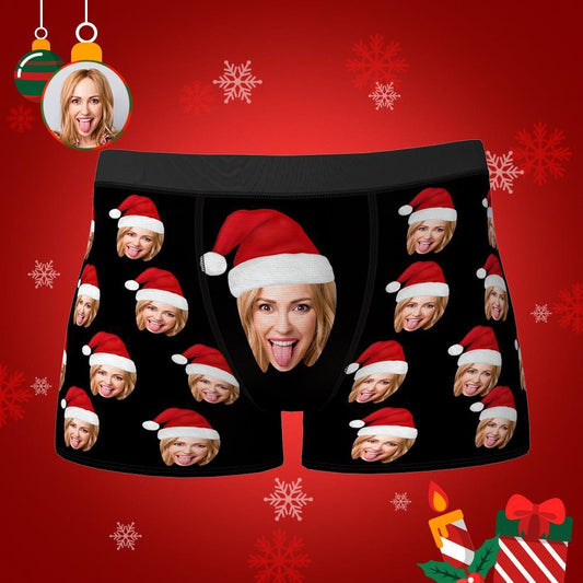 Gepersonaliseerde boxershorts met kerstmuts, gepersonaliseerd ondergoed met foto, kerstcadeau voor mannen