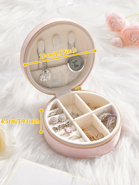 Op maat gemaakte, lichtroze, ronde, fluwelen sieradenkistje met naam – Verjaardag, bruiloft & bruidsmeisjes cadeau