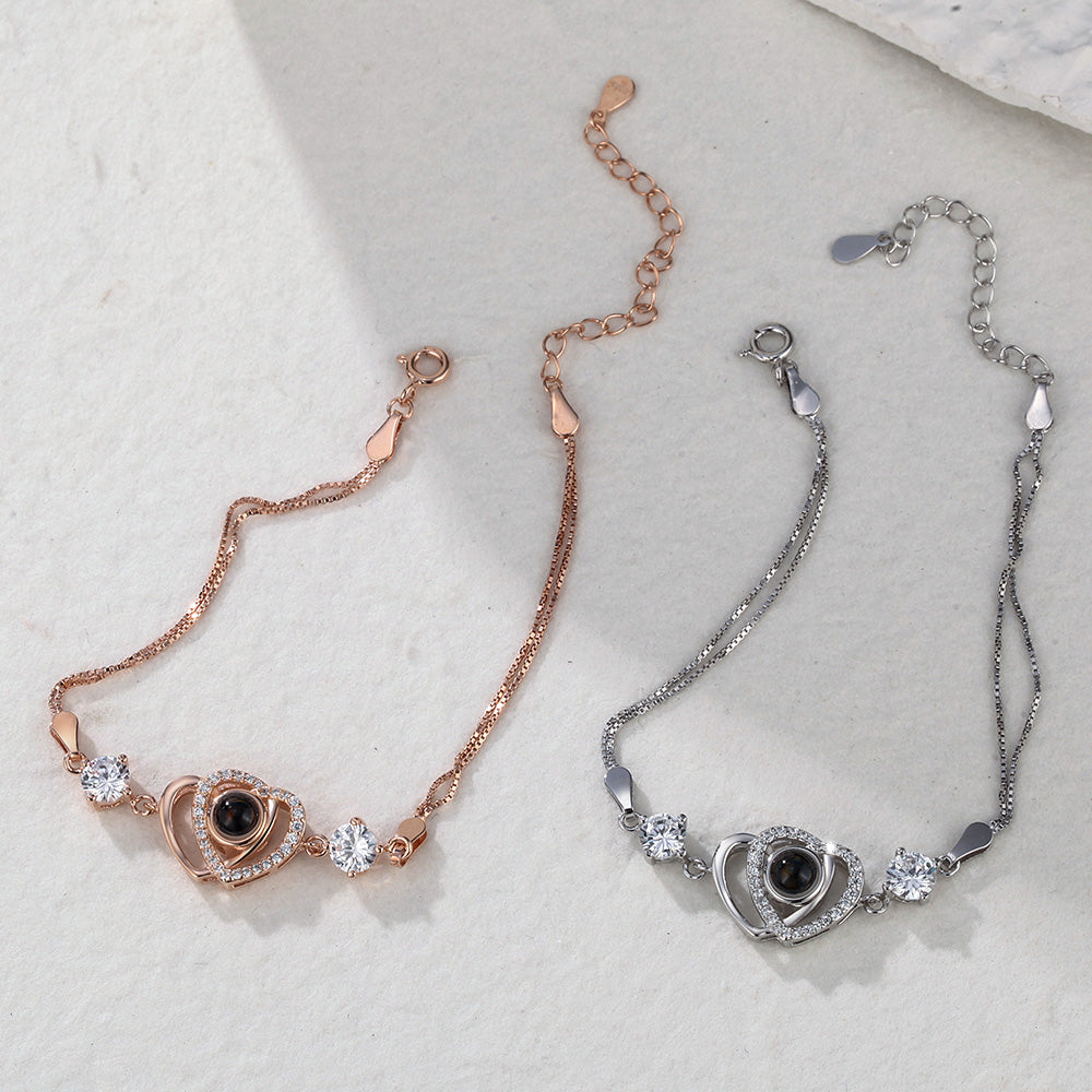 Op maat gemaakte armband met dubbel hartmotief van 925 sterling zilver
