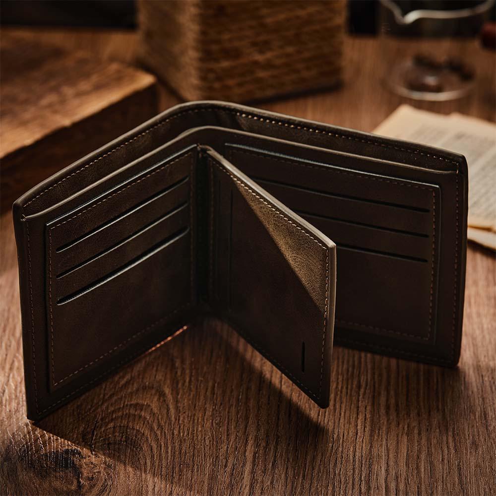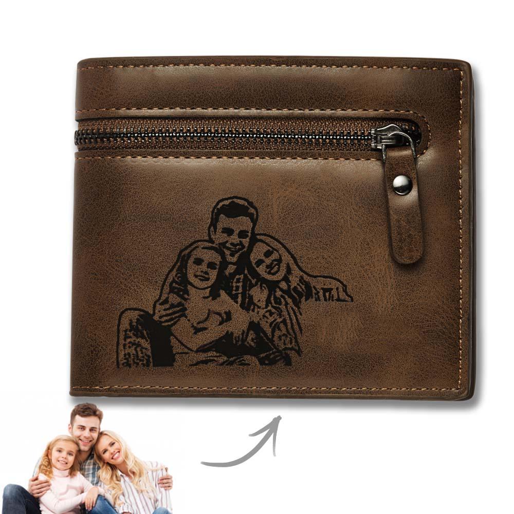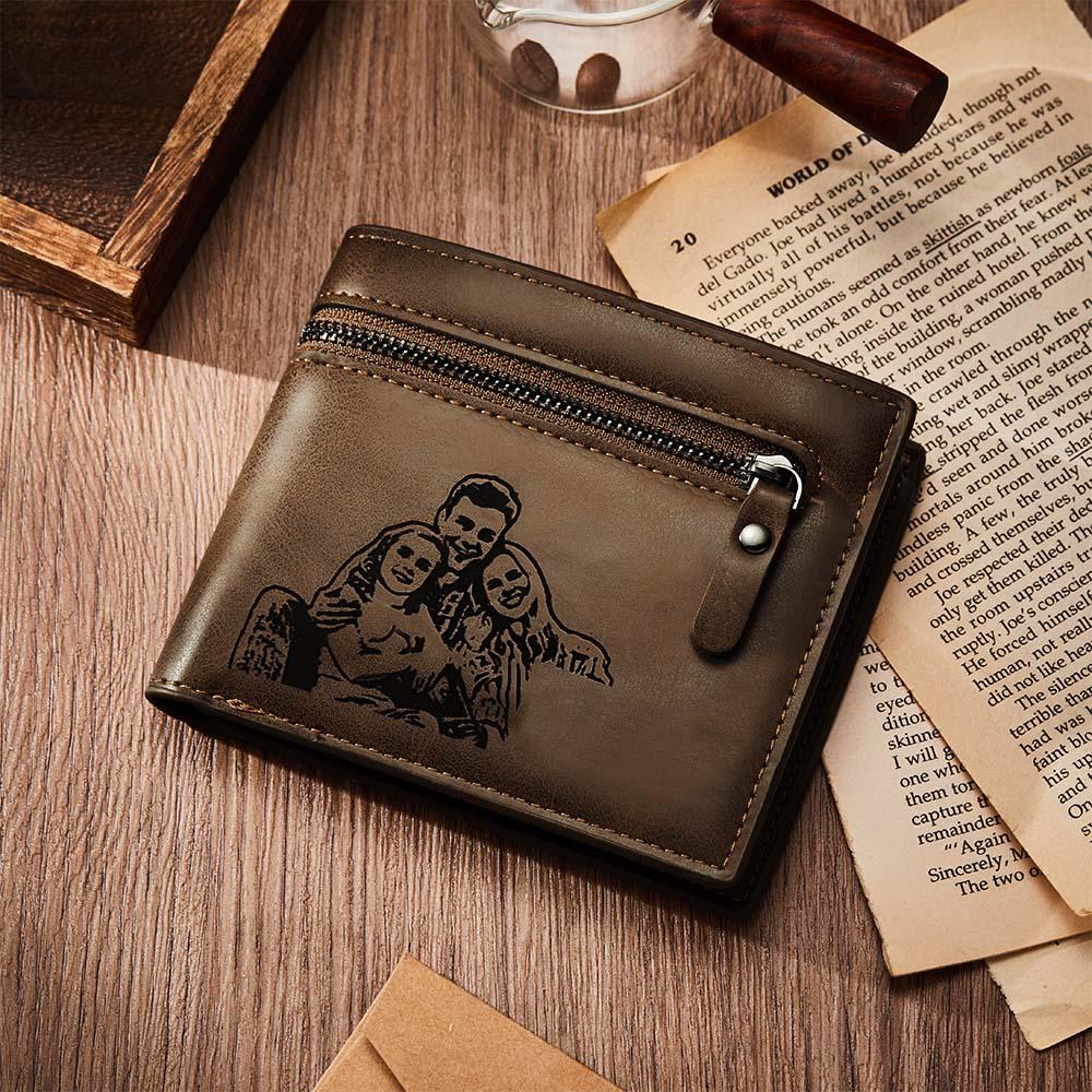 Op maat gemaakte portemonnee van donkerbruin PU-leer met foto en gravure – Verjaardags- en Vaderdagcadeau