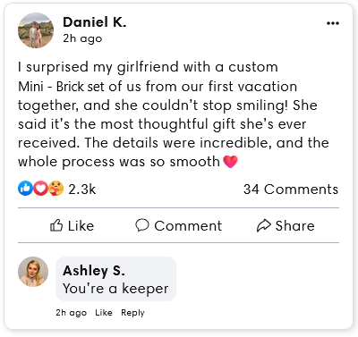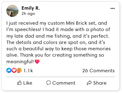 Share a photo that inspires you, and we'll transform it into a unique, beautifully crafted mini brick set.